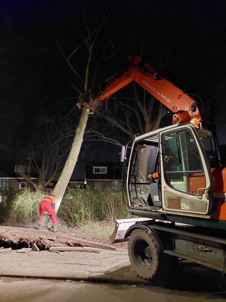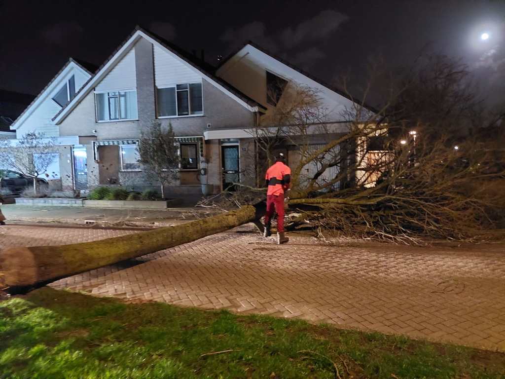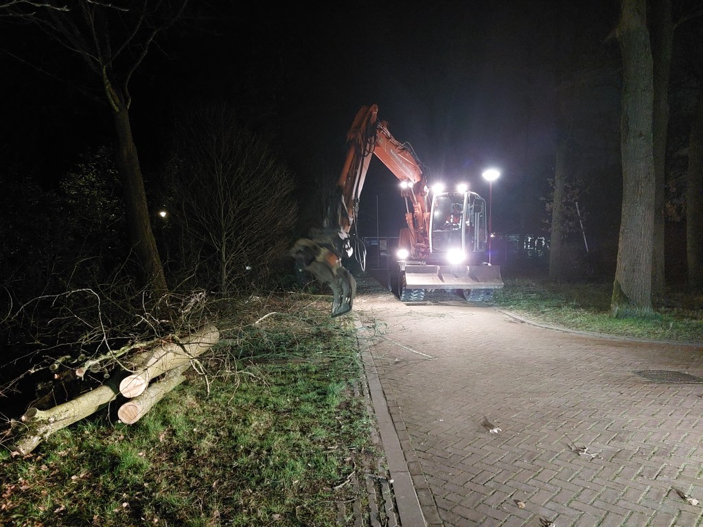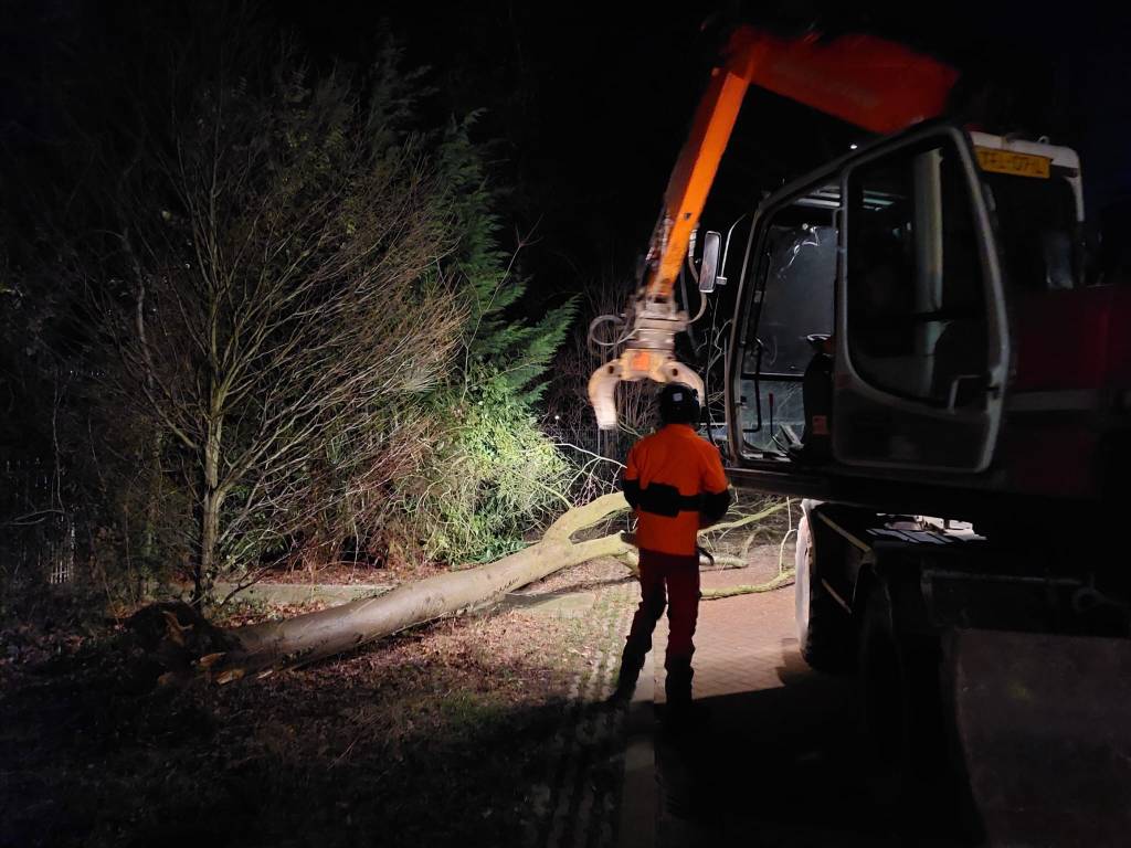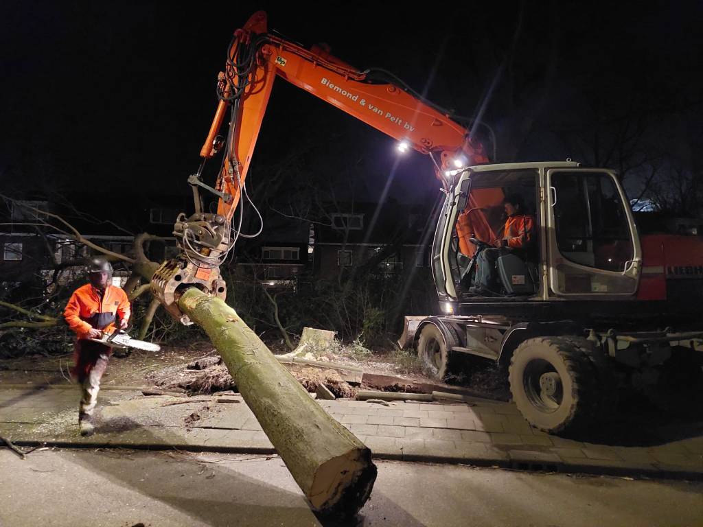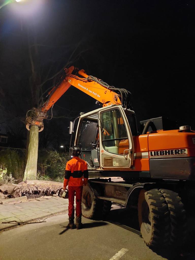 Ta bort stormskadade fallna träd i stadsområden.