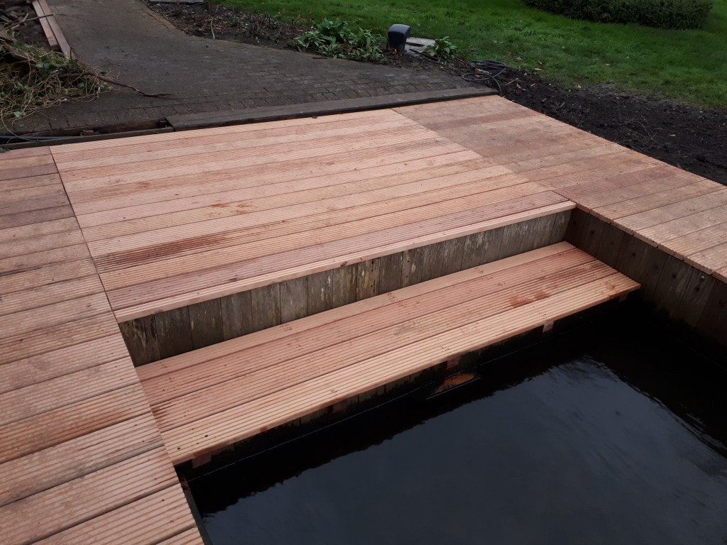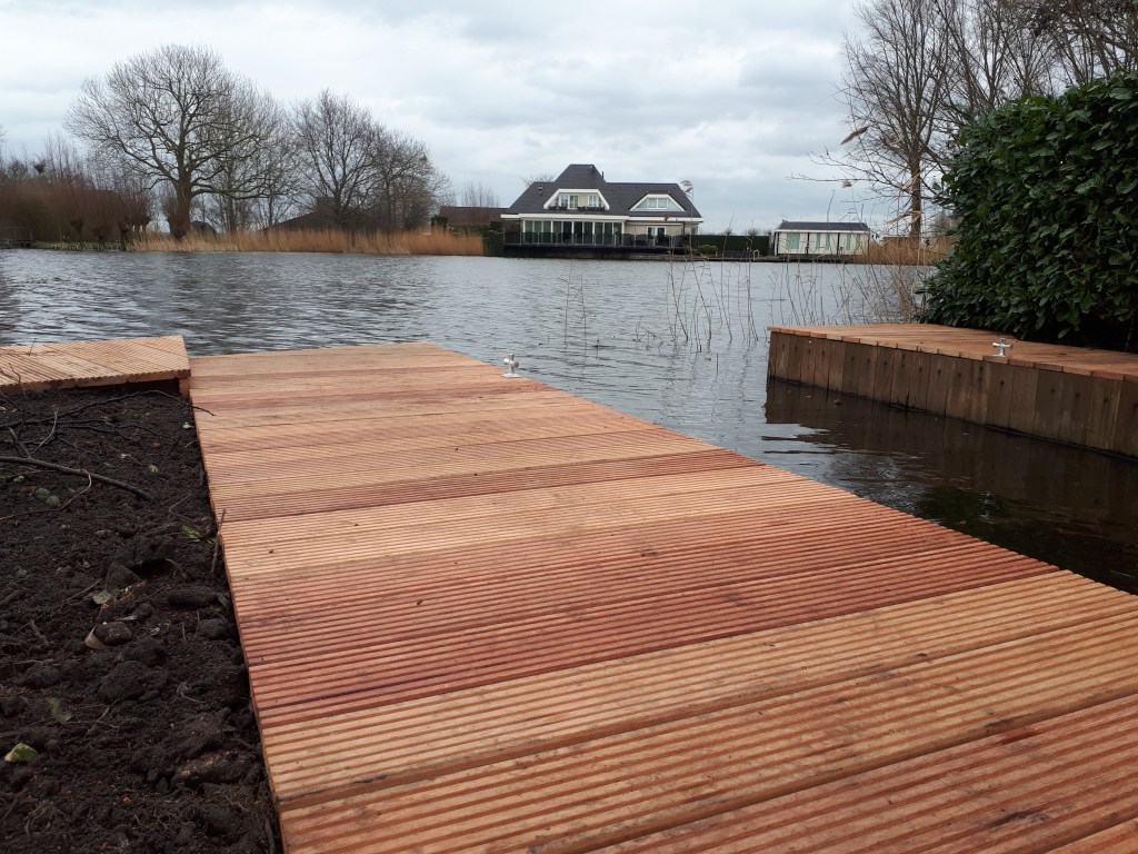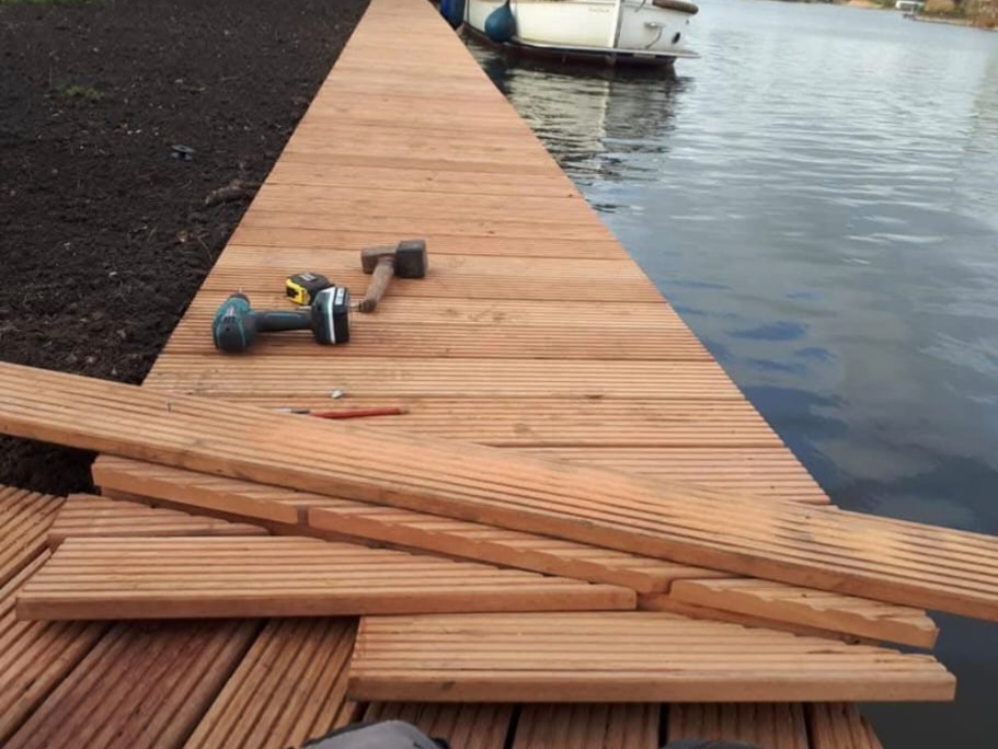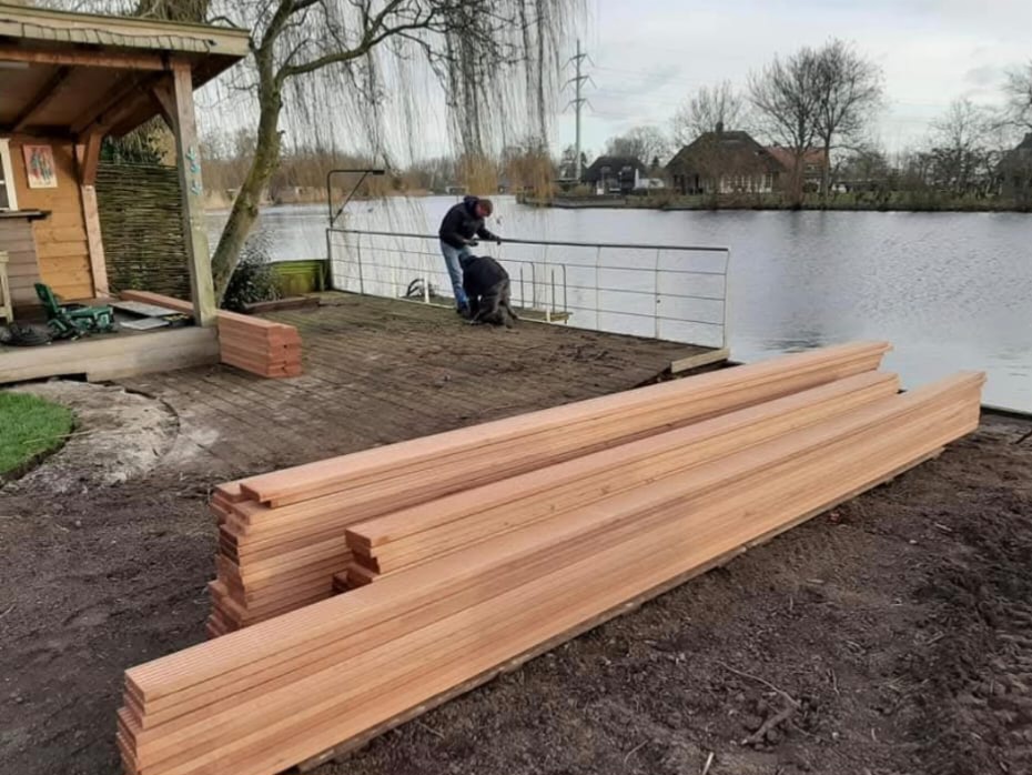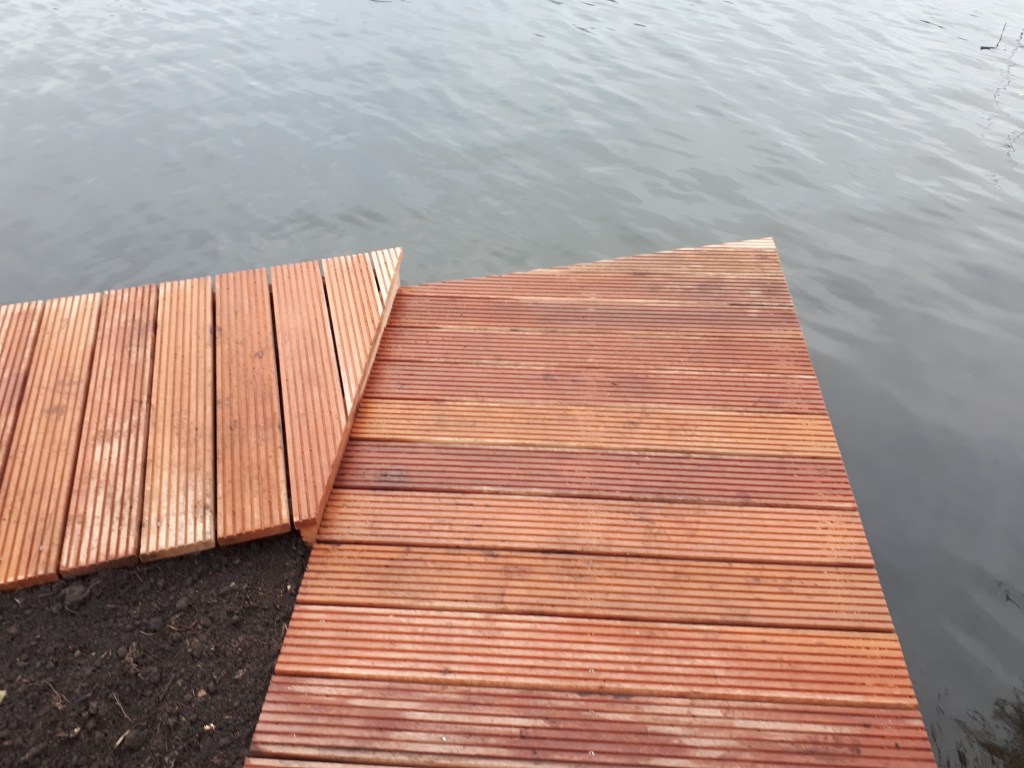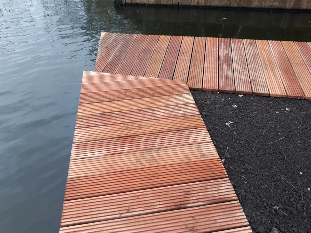 Byta av altan längs vattnet mot nya Bankirai-plankor.