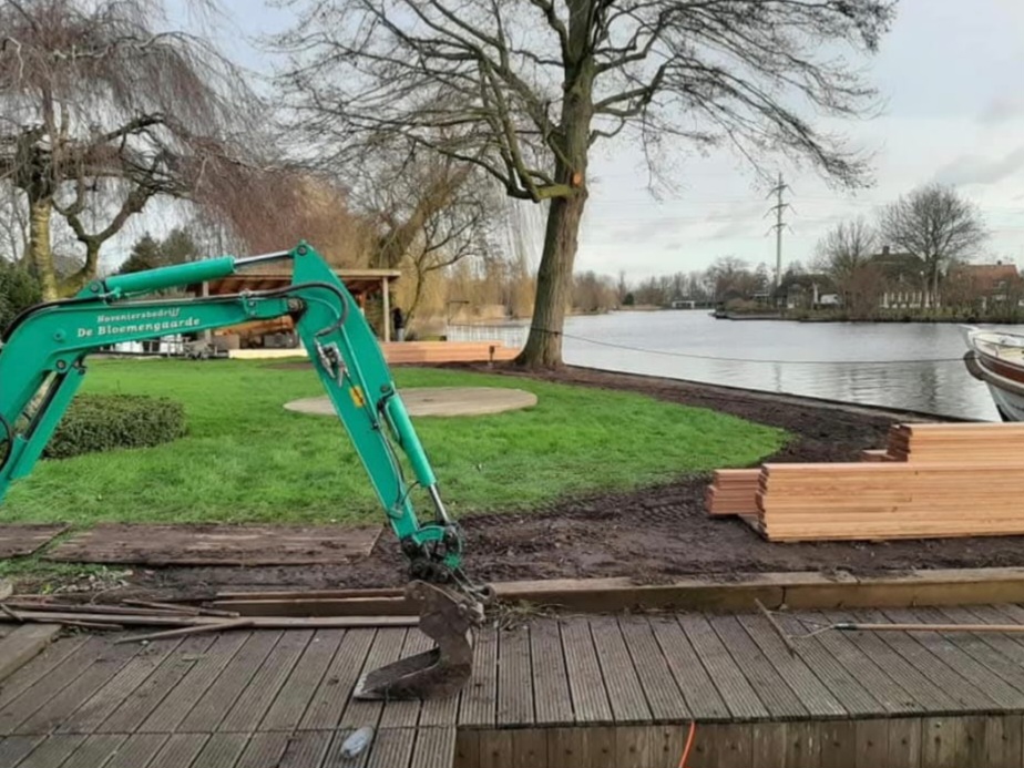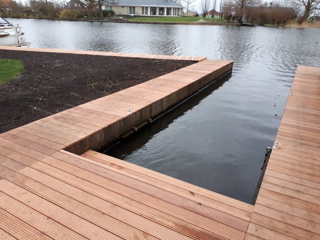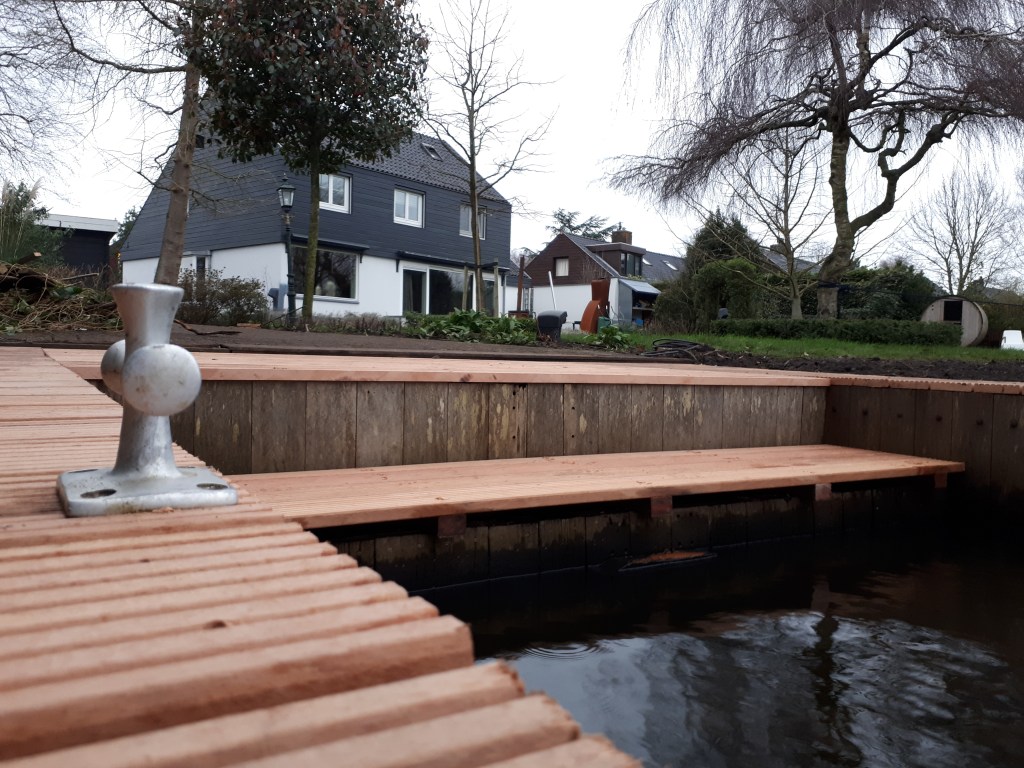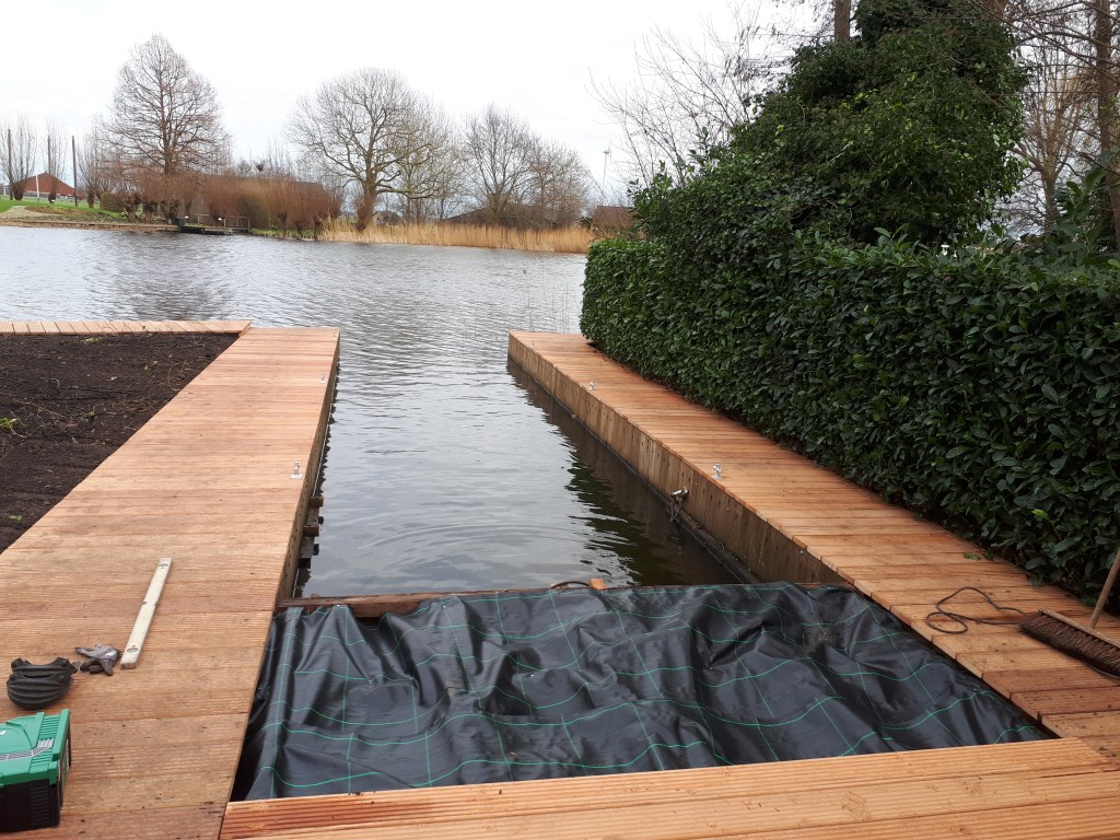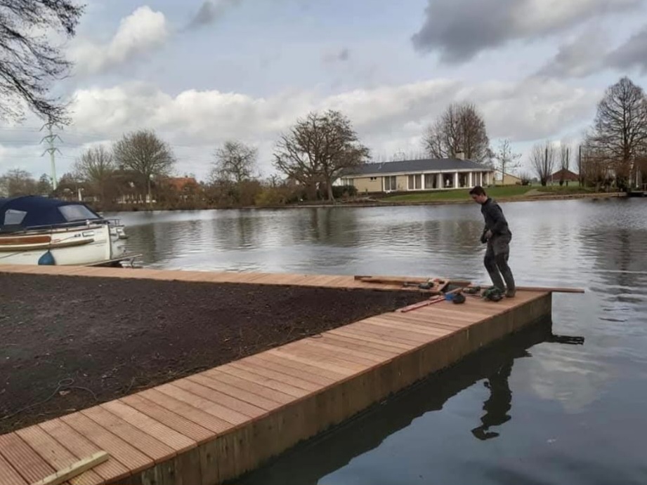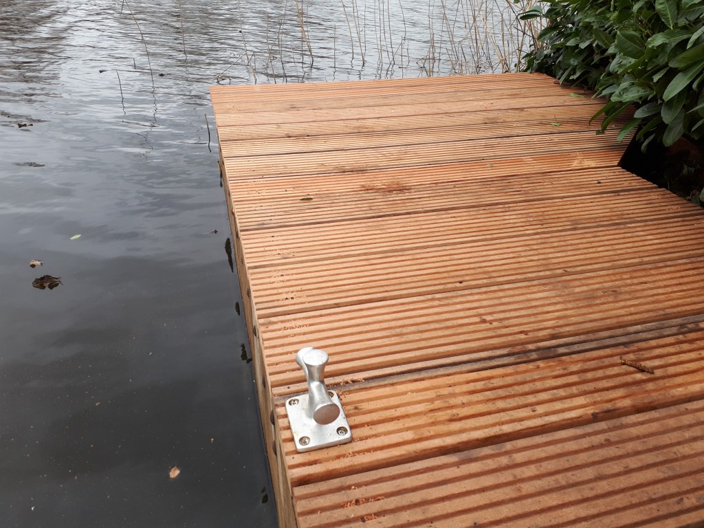 Byta av altan längs vattnet mot nya Bankirai-plankor.