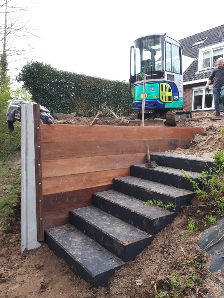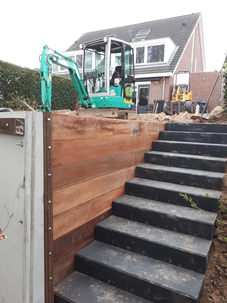 Byta av altan längs vattnet mot nya Bankirai-plankor.